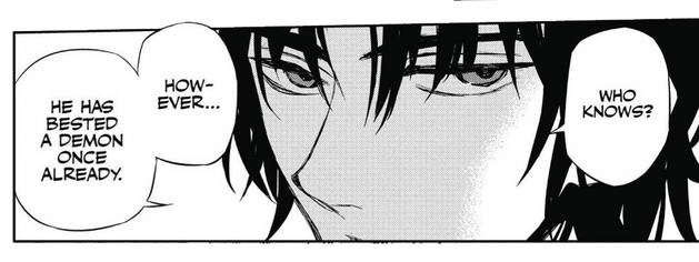 A demon who formed a contract with Guren, given to him by Mahiru and becomes his demon weapon in the form of a black katana. Guren can call Noya to have the weapon fly back to his hand whenever they are separated.